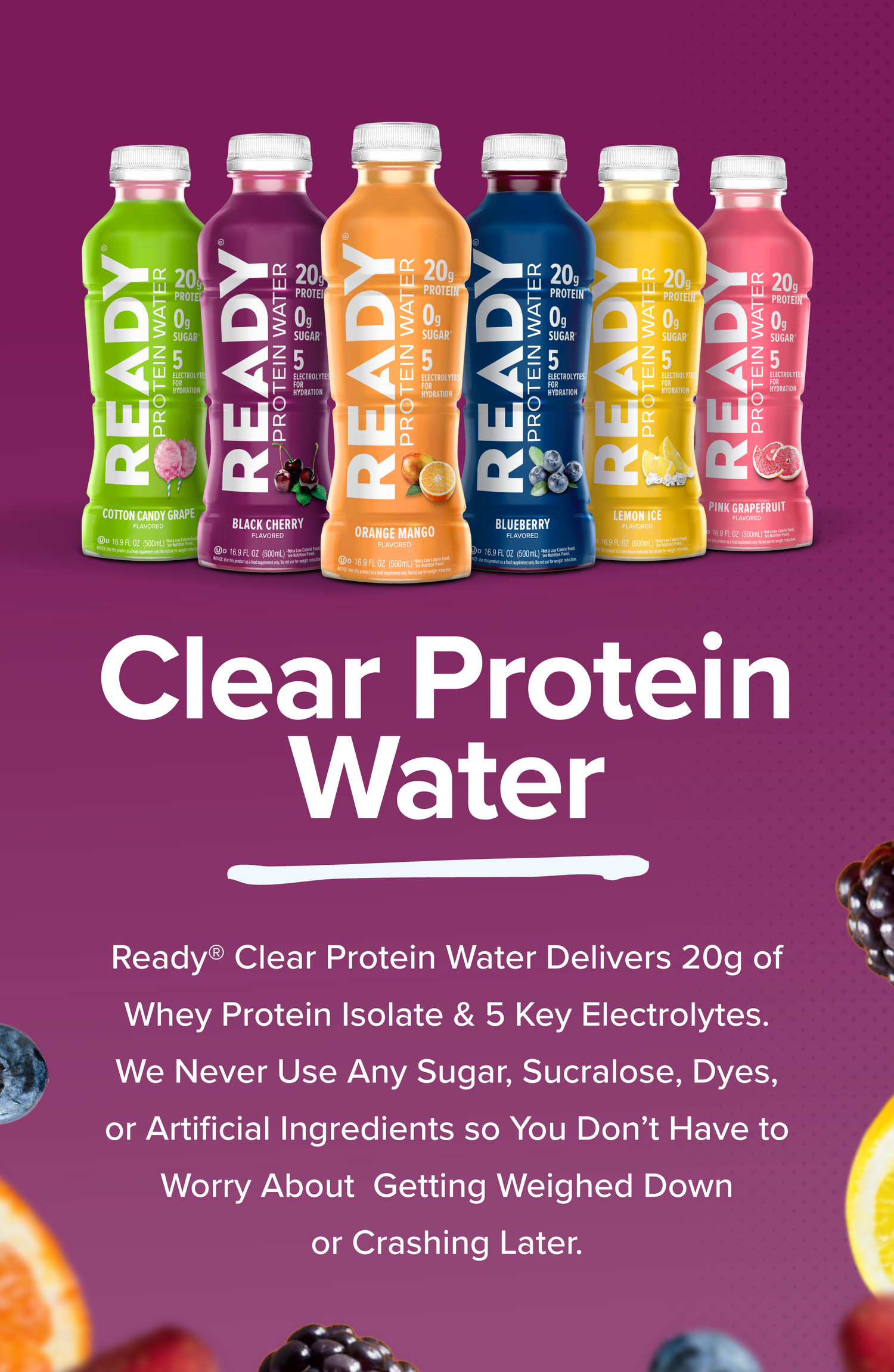 When we decided to develop a functional water with protein, taste was the number one criteria and it had to be all-natural. We wanted to go beyond hydration and help people “Be Ready” for that next goal they are chasing. There’s no better feeling knowing you prepared your body and mind to achieve your goals.