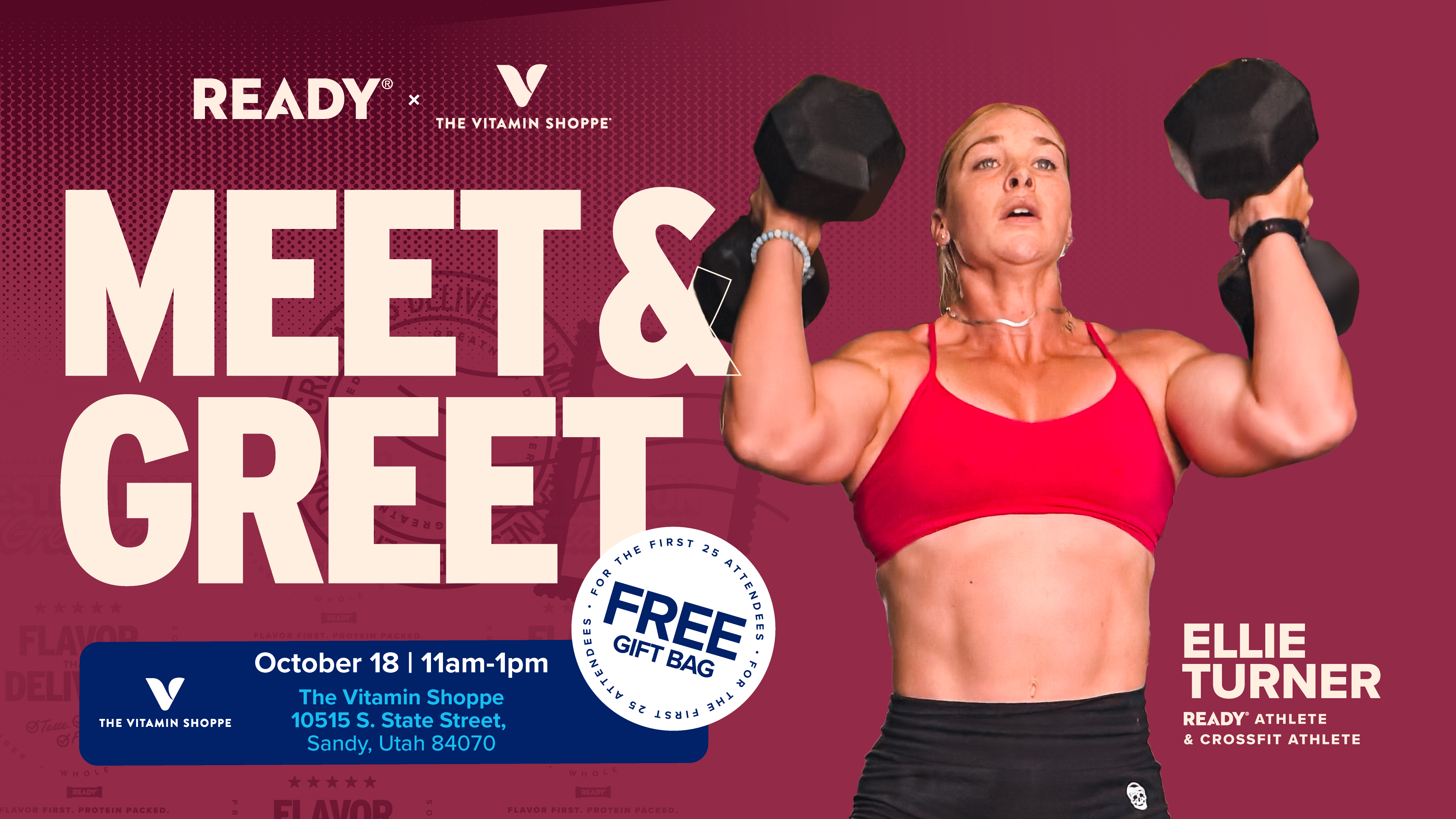 Ready® is Proud to Welcome Our Newest Athlete, Ellie Turner. A Staple in the Crossfit Space as One of The Fittest Women on Earth Year After Year, She's Now Fueling Her Journey With Ready®. Don't Miss Your Chance to Meet Ellie and Celebrate Our Brand-New Partnership with The Vitamin Shoppe® on October 18, 2025, from 11AM-1PM at 10515 S. State Street, Sandy, Utah 84070.