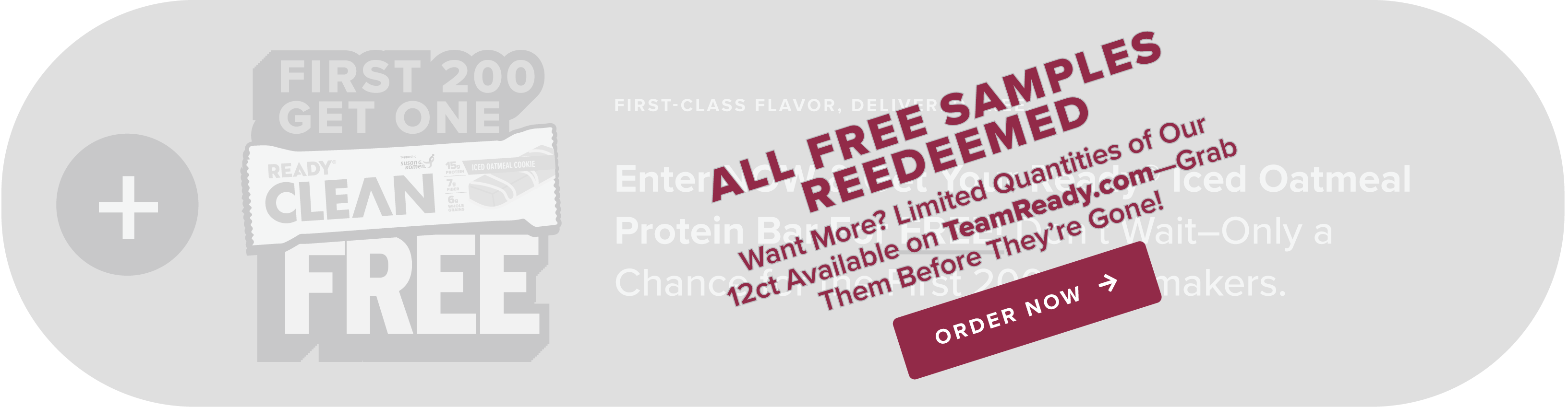 One Lucky Winner will Score the All-New Cozy, Spiced Sweetness of the Iced Oatmeal Cookie Ready® Protein Bars, Our Deliciously Fan-Favorite Chocolate Peanut Butter Ready® Protein Bars, the Classic Chocolate Chip Ready® Protein Bars, Crunchy Cinnamon Sugar Ready® Protein Puffs, a Refreshing Variety Bundle of Our Ready® Protein Water—Plus Exclusive Ready® Swag: Our “Destination Greatness” Crewneck and Beanie, a Collectible Enamel Pin, and Sticker Sheet Perfect for Tastemakers Like You.