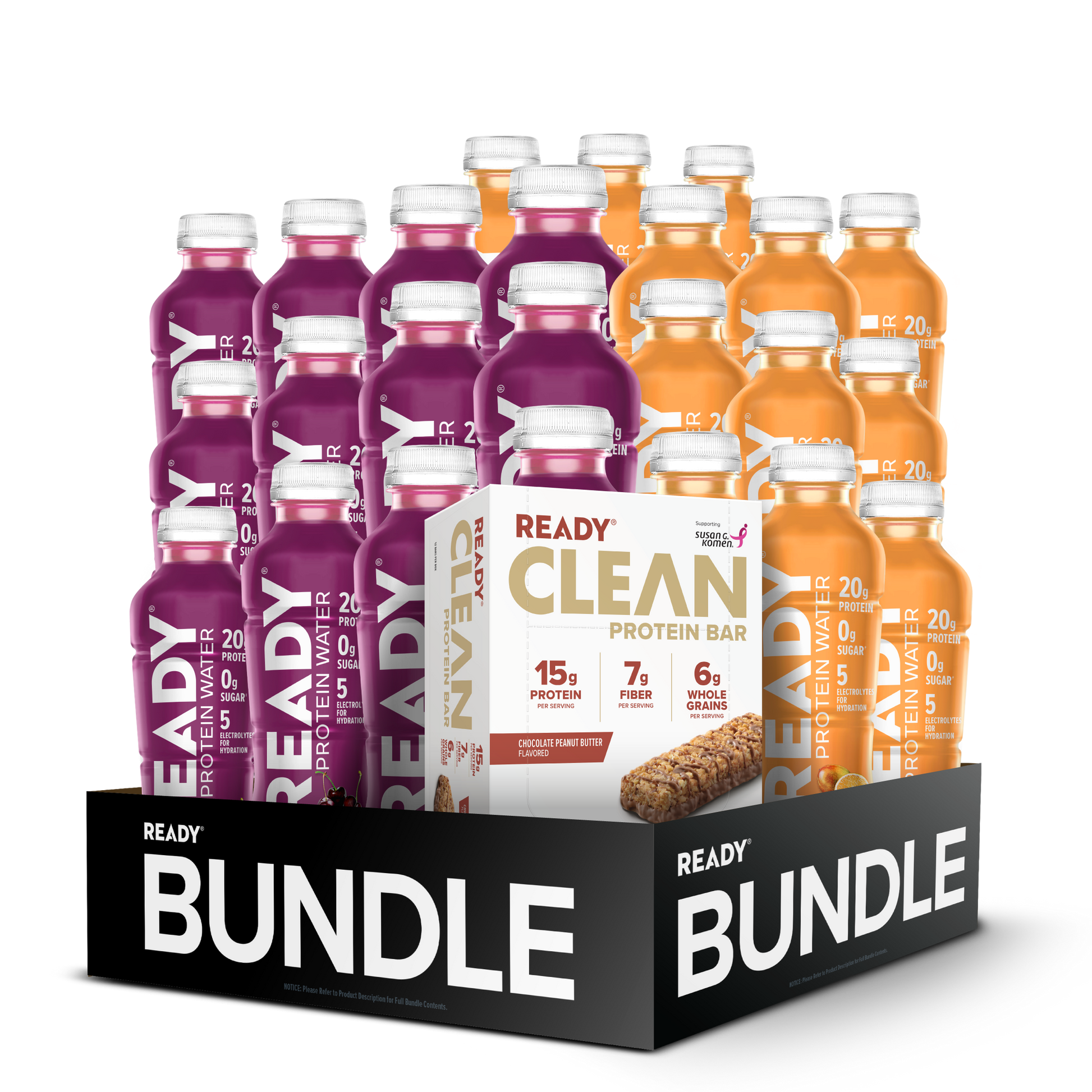 The Ready® Best-Sellers Bundle is the perfect way to try our top flavors and products. Protein packed water and bars will have you coming back for more.